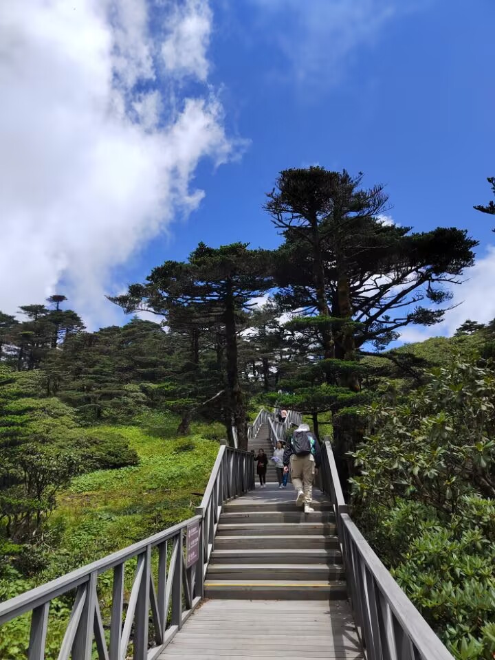 放眼望去沿山上栈道展开的满是低矮的灌木,也有不少并不很高的针叶林